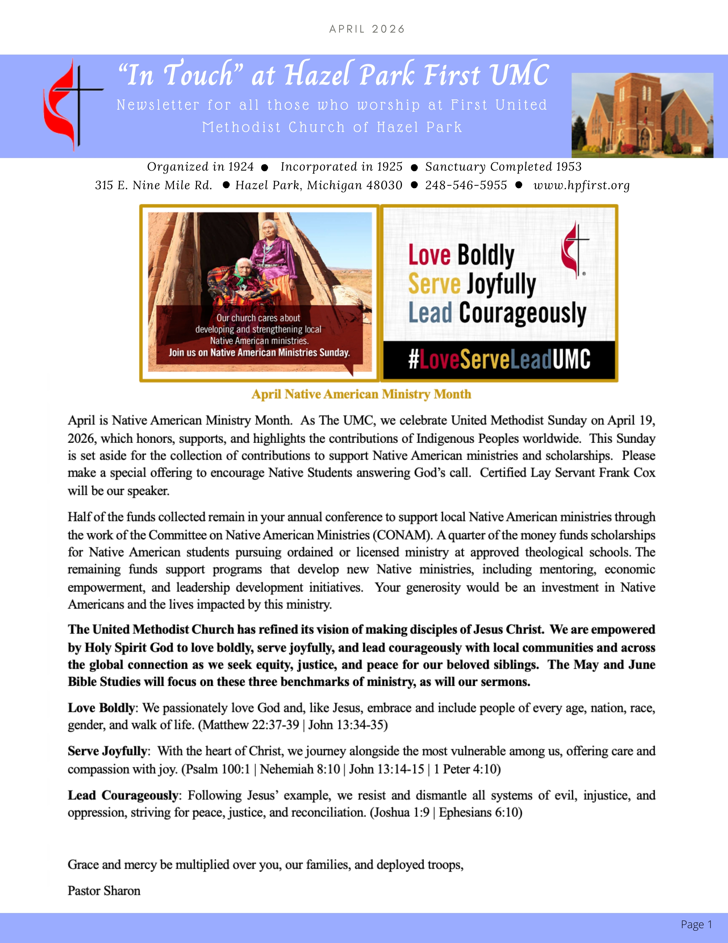 You are welcome to make a financial contribution to this ministry by clicking on the "Offering" button below to make a one-time or recurring gift with your bank or credit card. Or, if you prefer to send a check via U.S. Mail, address it to the First United Methodist Church; 315 E. 9 Mile Road; Hazel Park, MI 48030. We give thanks for whichever way you choose to give.