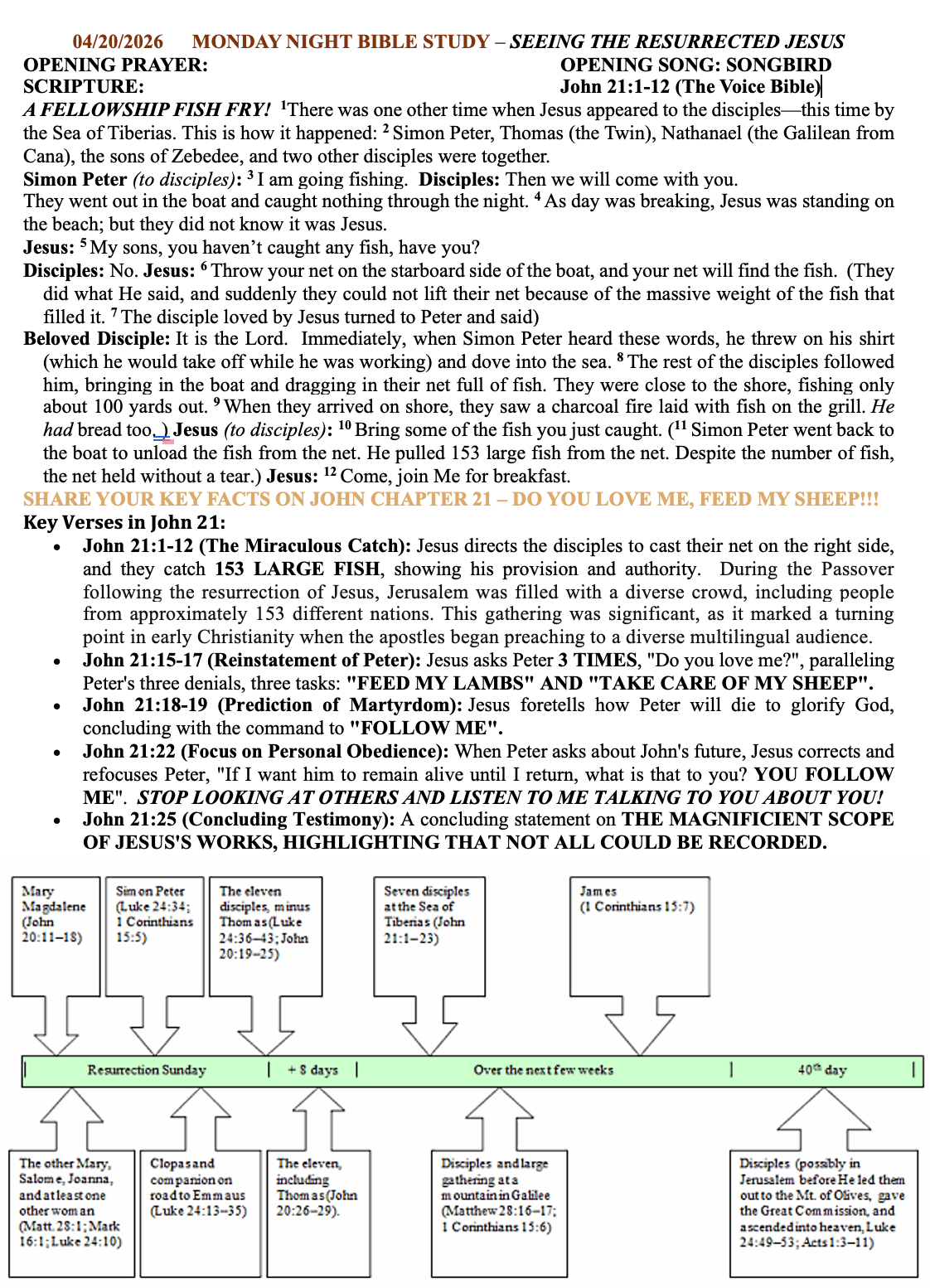 The Scriptures that we will focus on will be from Chapter 21 from the book of John.