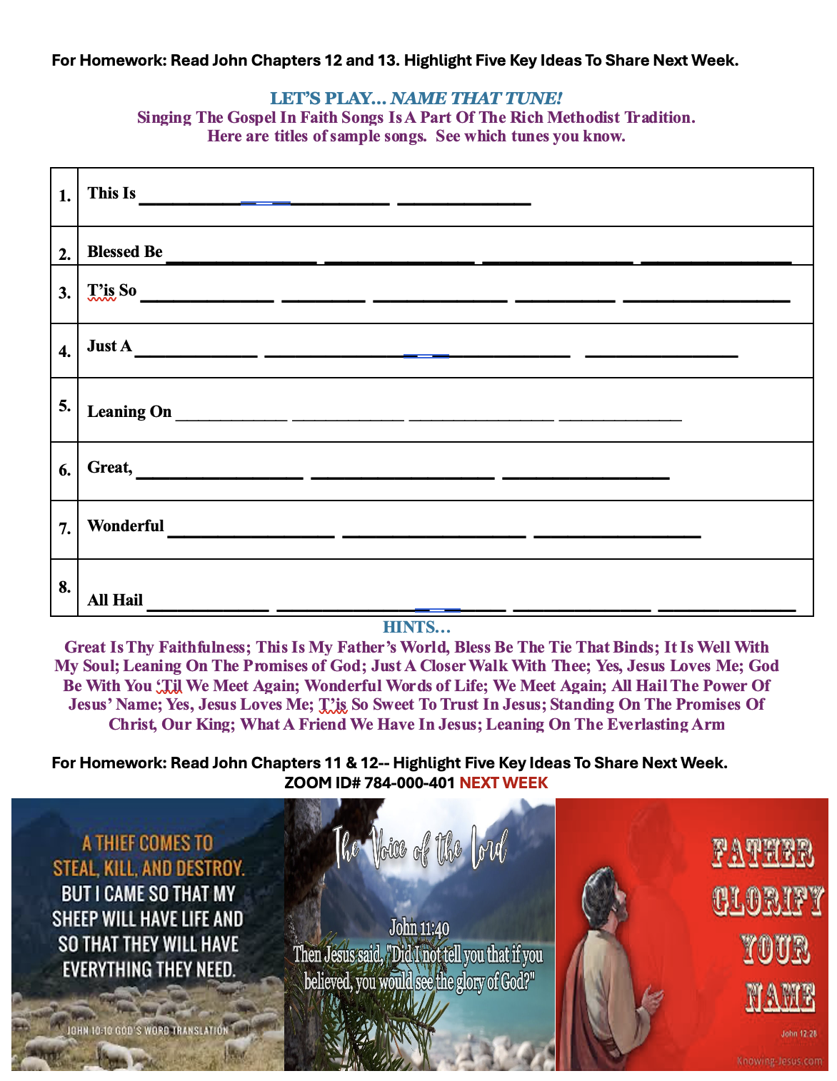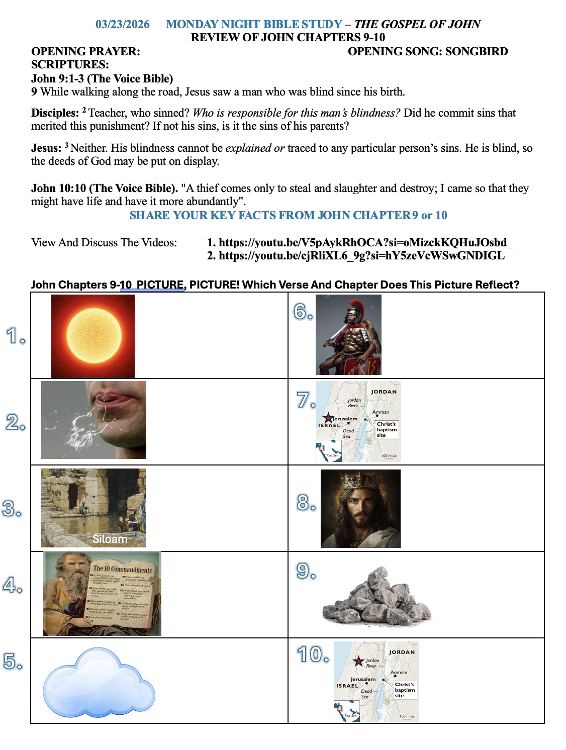 Our next Bible Study will be on Monday, March 30th, 2026 at 6 p.m.